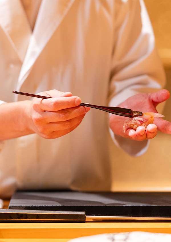 日本の自然の伝統美と落ち着きを体現した空間で、やさしい味わいの鮨と共に特別な時間をお過ごしください。